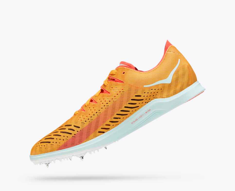 When ripping around the track at dizzying speeds, a fast spike is a prerequisite for performance. Engineered with a propulsive carbon fiber plate and designed in accordance with World Athletics’ guidelines, the Cielo X LD is equipped for longer range distances (3K-10K). Combined with HOKA’s lightest performance foam, this responsive race spike delivers a snappy ride in under 4 ounces.