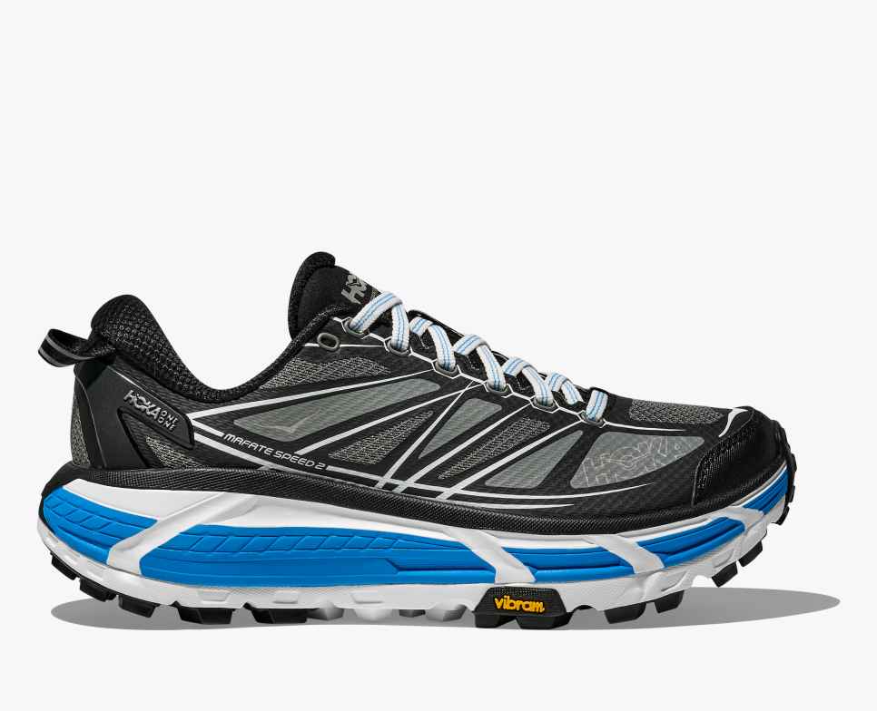 The Mafate Speed 2 was built to offer support and cushioning in technical terrain over any distance. This update features a deep Active Foot frame for support, and a tuned Meta-Rocker to facilitate smooth transitions through the gait cycle. The outsole utilizes deep flex grooves to adapt to a variety of terrain, and the 5mm Vibram Mega-Grip tread grips even the trickiest surfaces. The Mafate Speed 2 is ready to perform mile after mile, however far your trail adventure takes you.